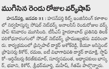 A Two Day Works Shop on Social Network Analysis by IT-KITSW.