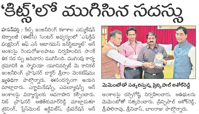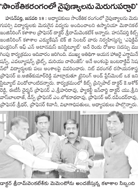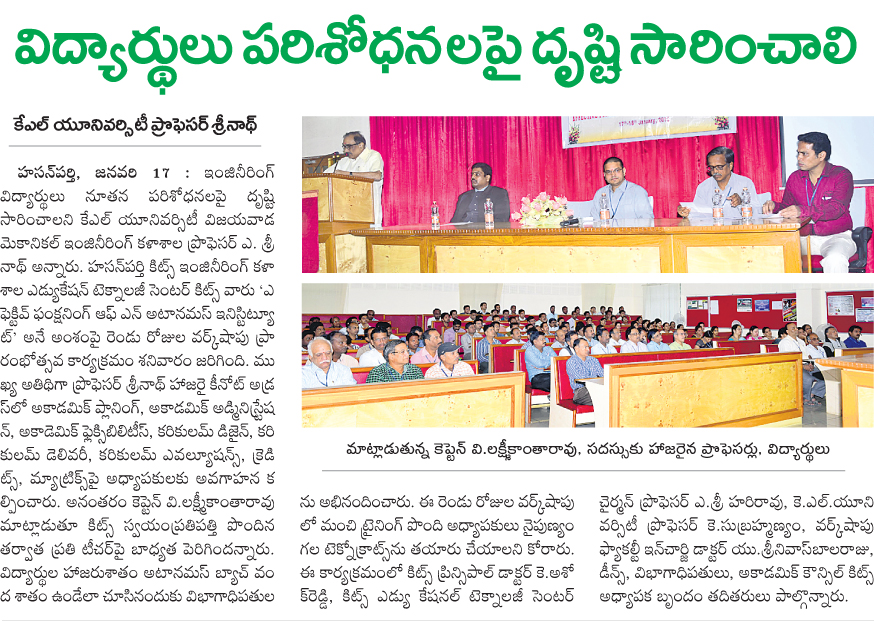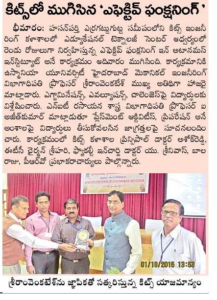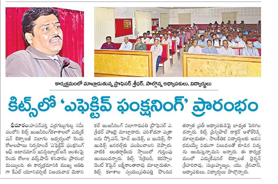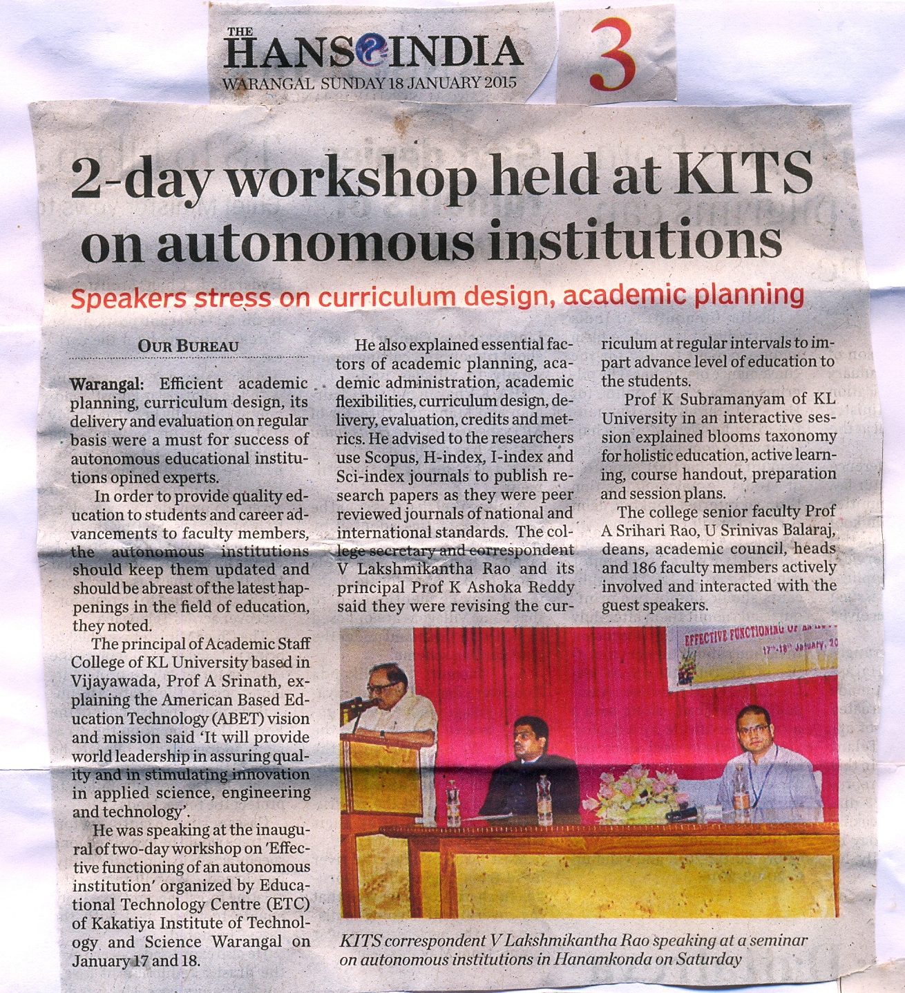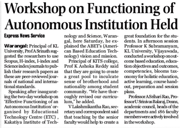 A two day work shop on "Effective Functioning of an Autonomous Institution " by ETC- KITSW