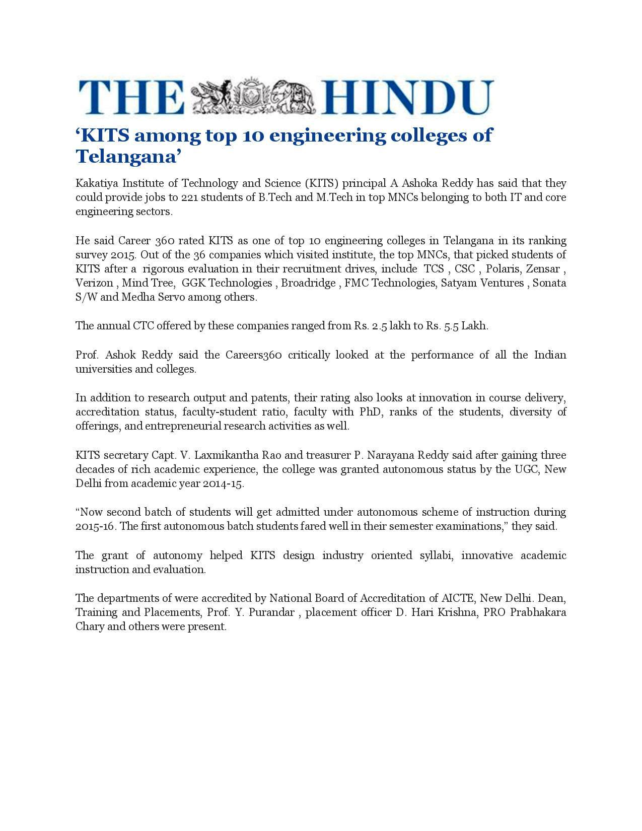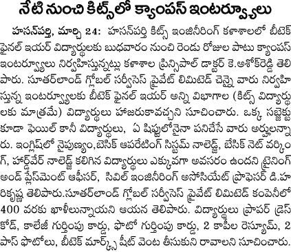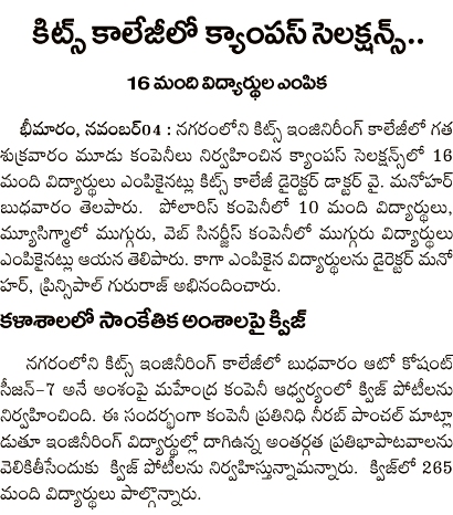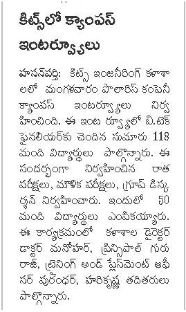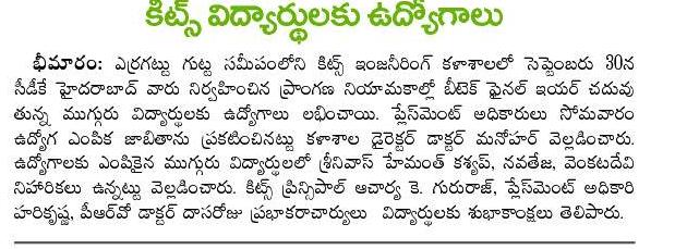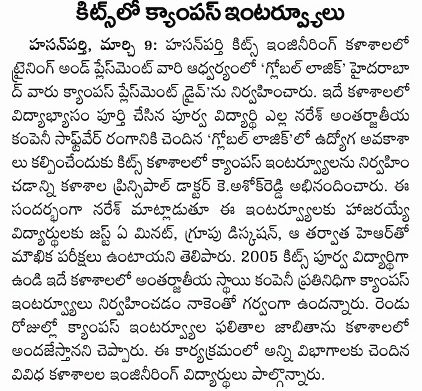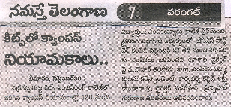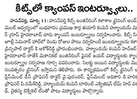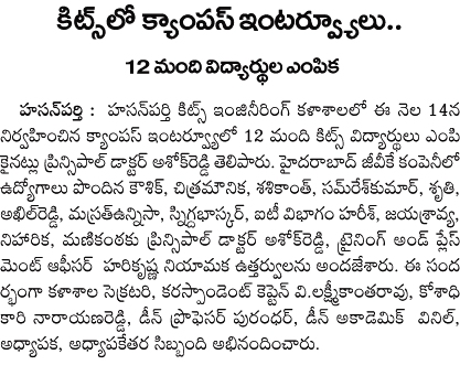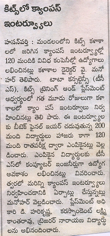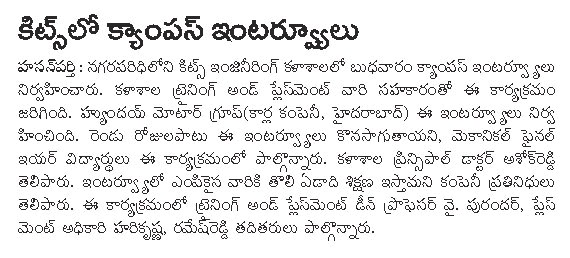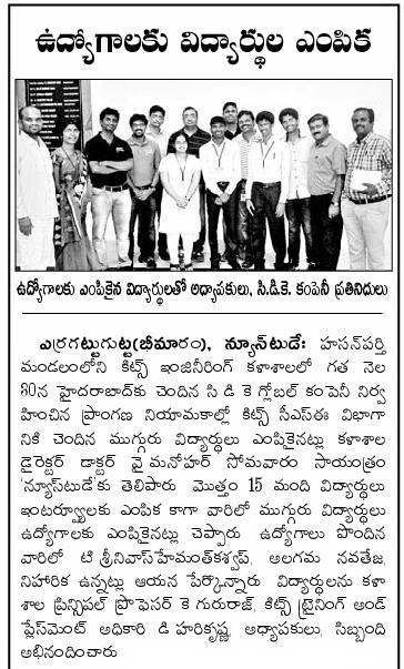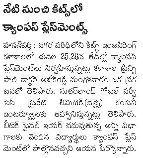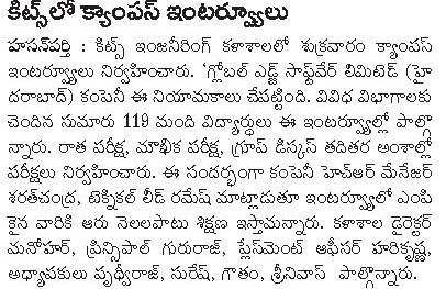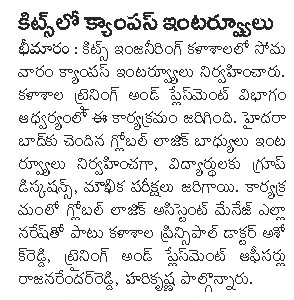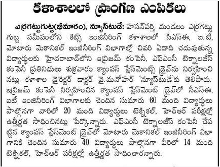 Campus Placements Drive by FMC Technologies and others at KITSW