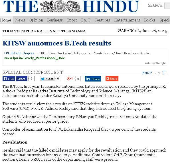 B.Tech. II Semester(Autonomous Batch) Results Declared