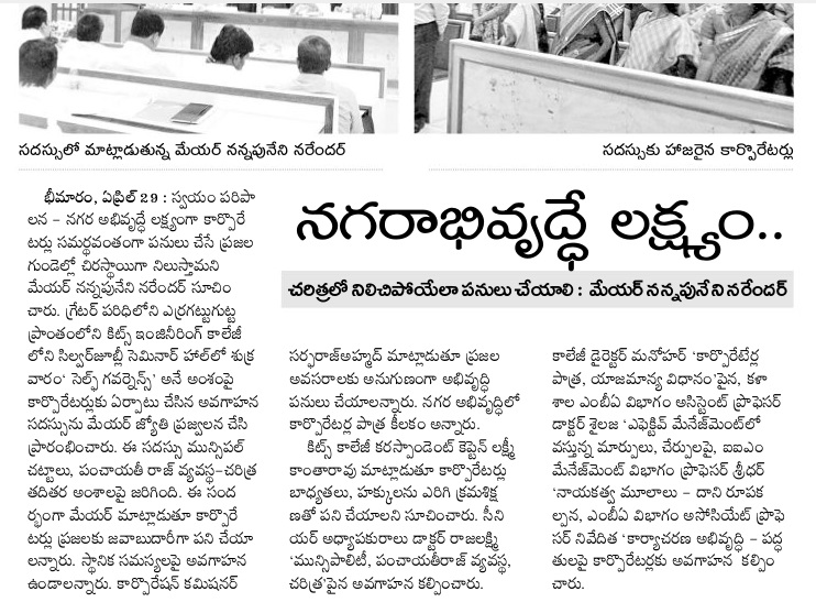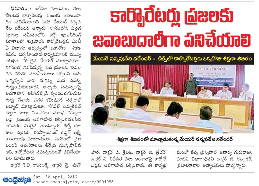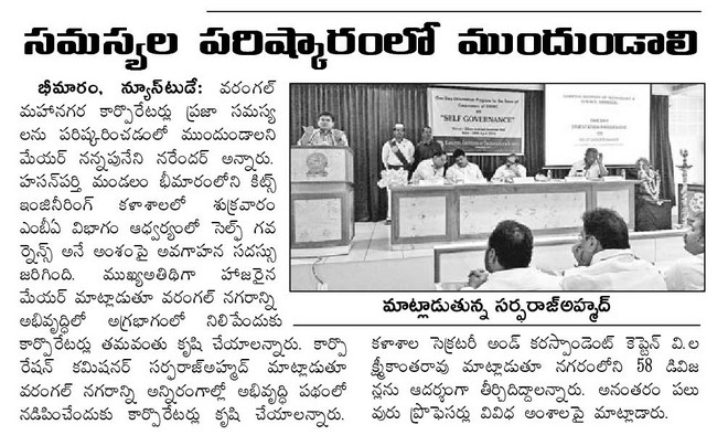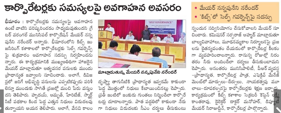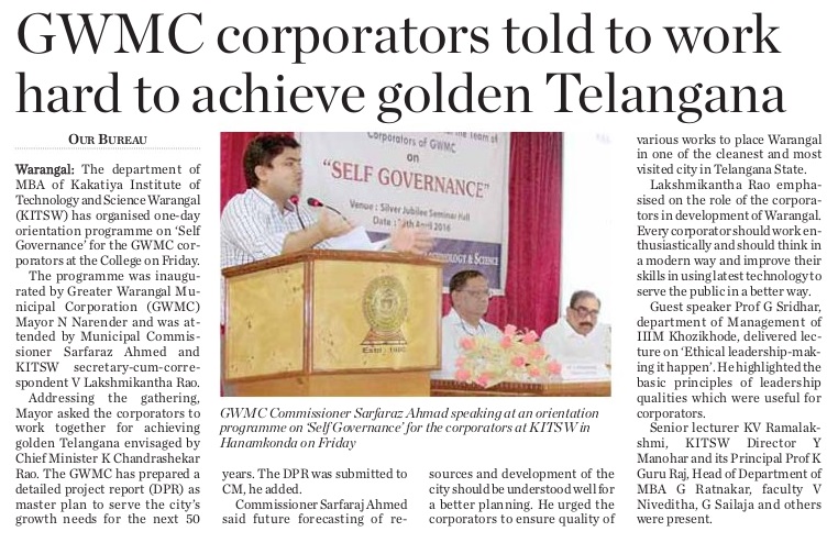 One day Orientation Programme for GWMC Corporators on Self Governance