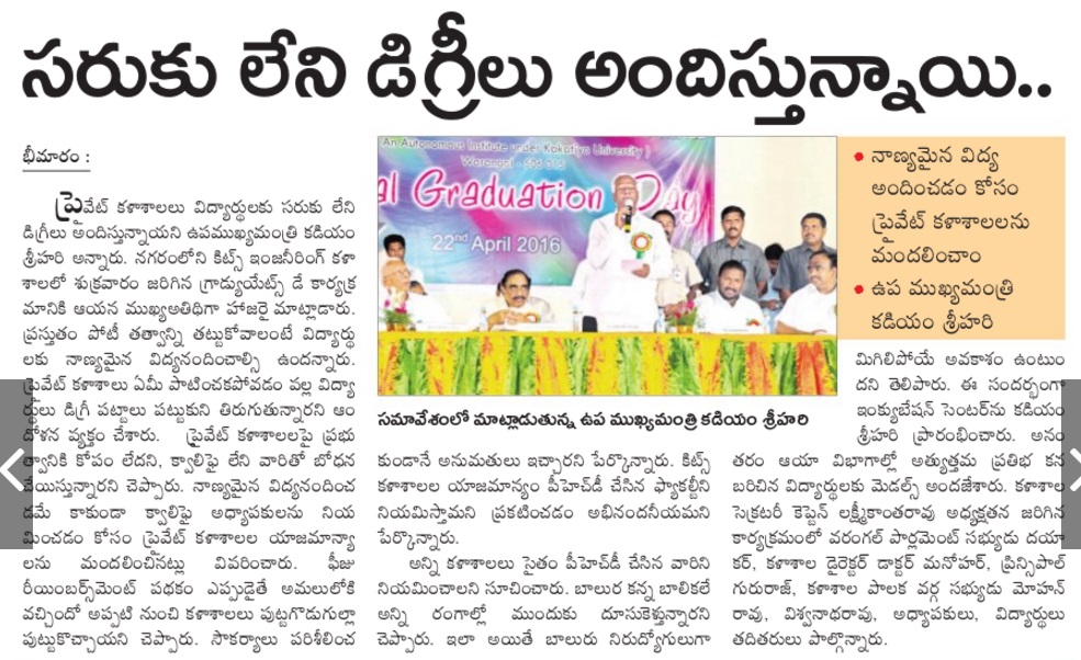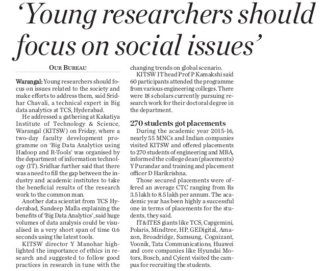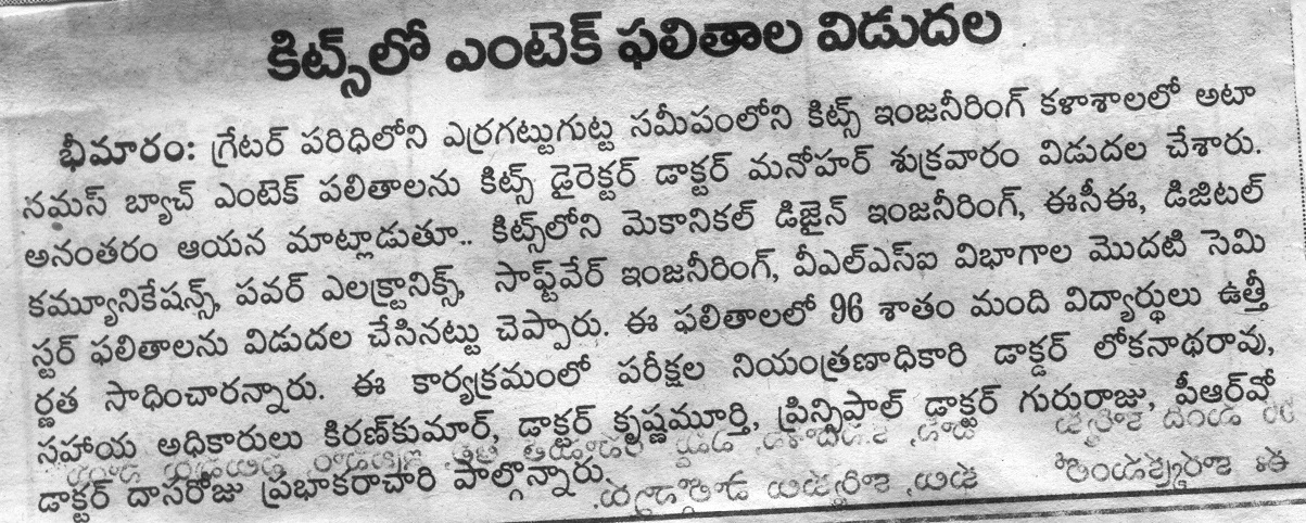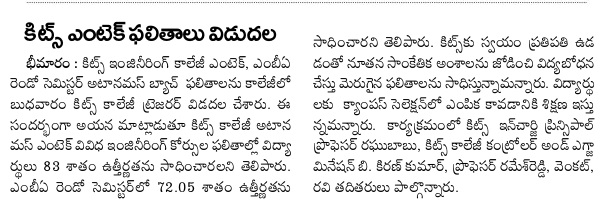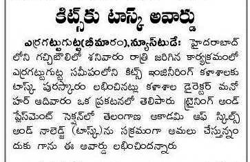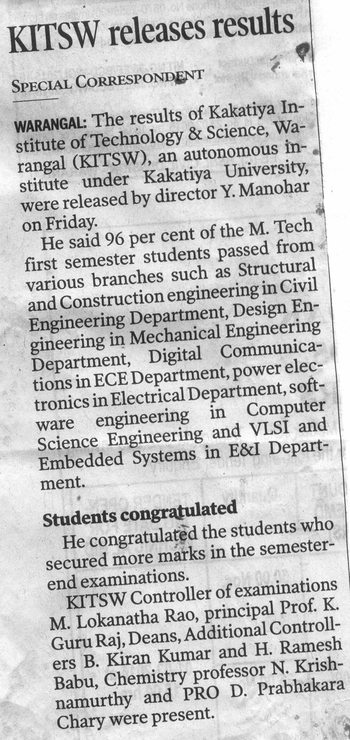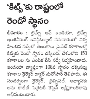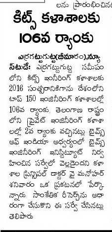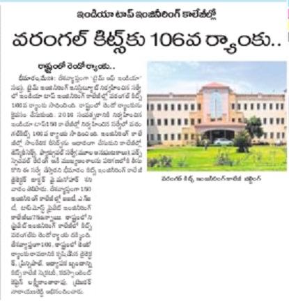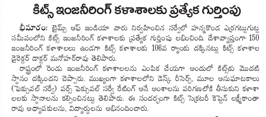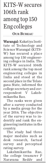 KITSW Secured 106th rank among top 150 Engg.Colleges in India.