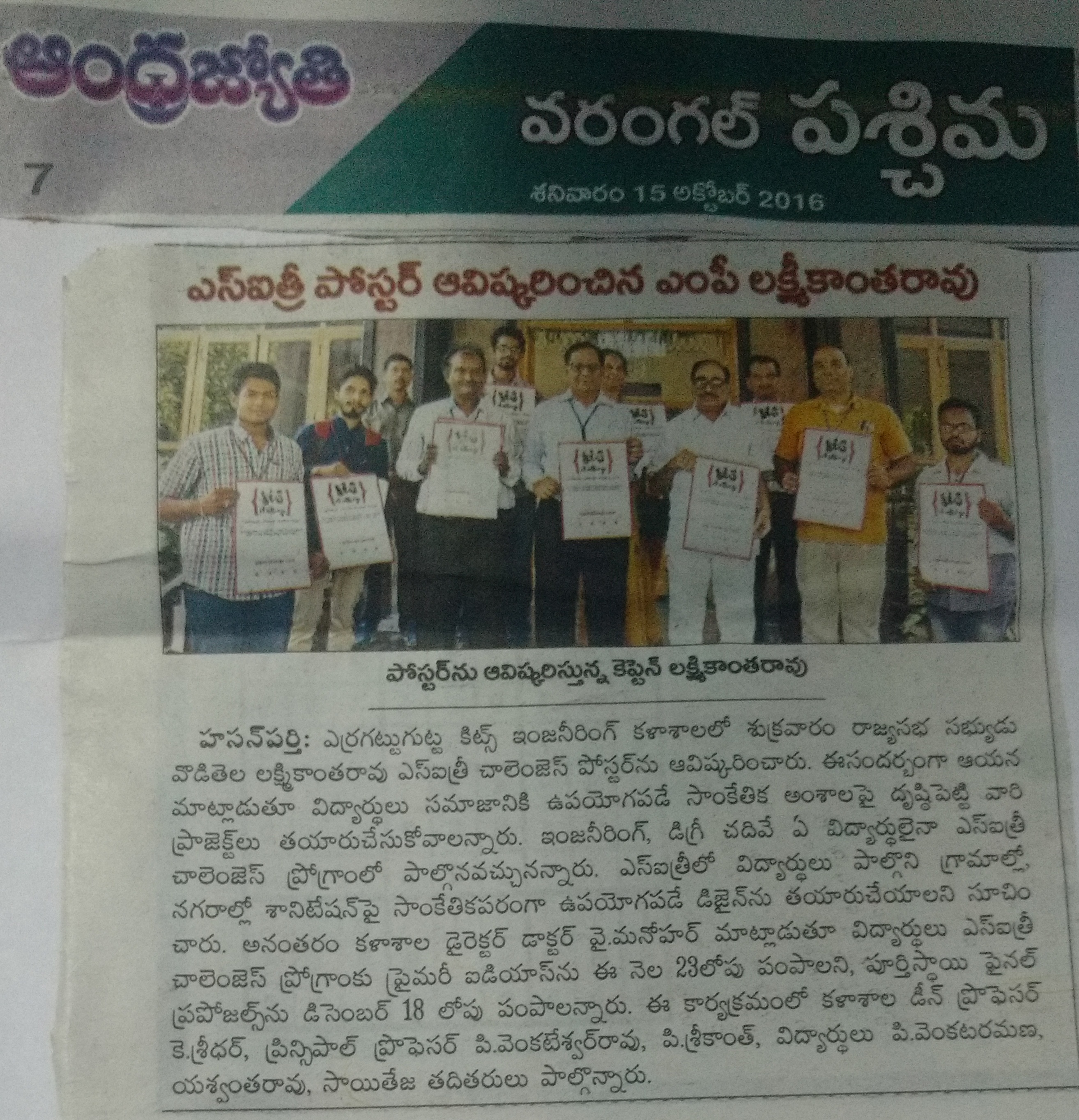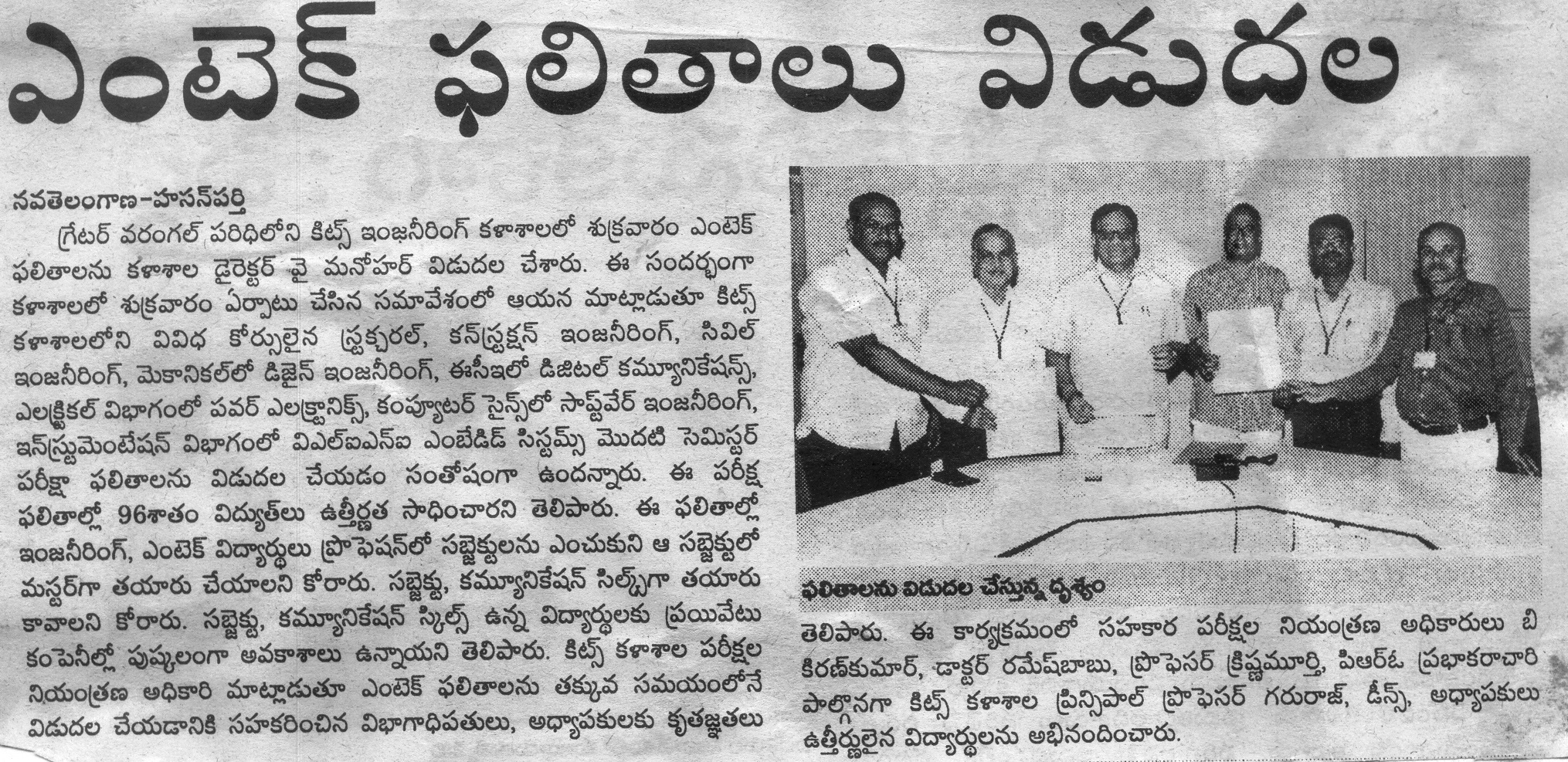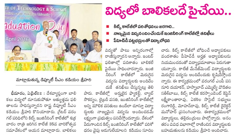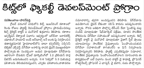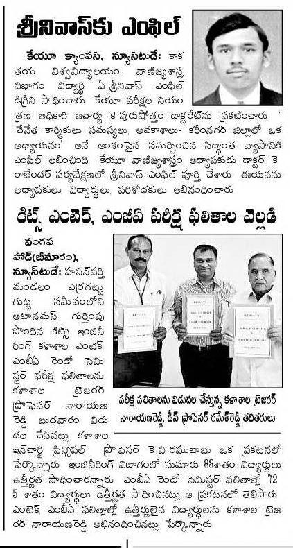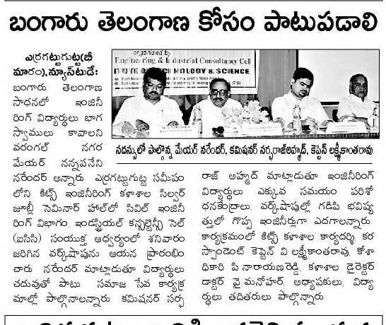 KITSW Secured 106th rank among top 150 Engg.Colleges in India.