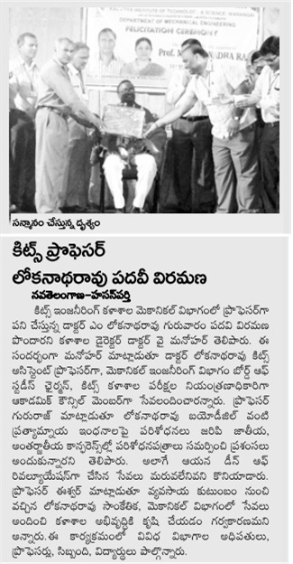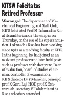 Superannuation of Dr.M.Lokanadha Rao, Prof. Dept.of Mech.Engg.