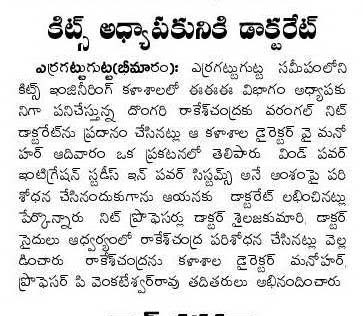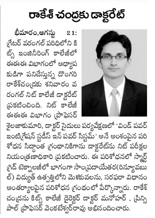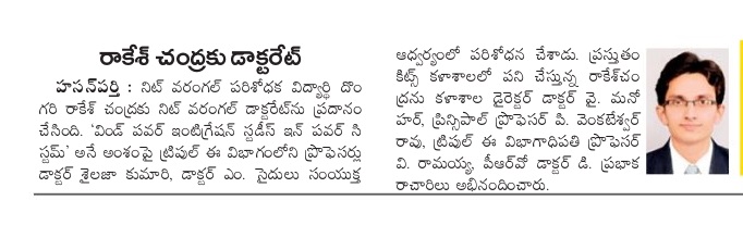 EEE Dept. Faculty Rakesh Chandra awarded Ph.D.