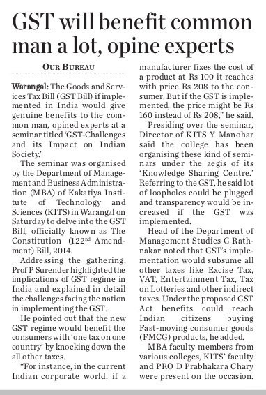 A Lecture on GST- Challenges & Impact on Indian Society