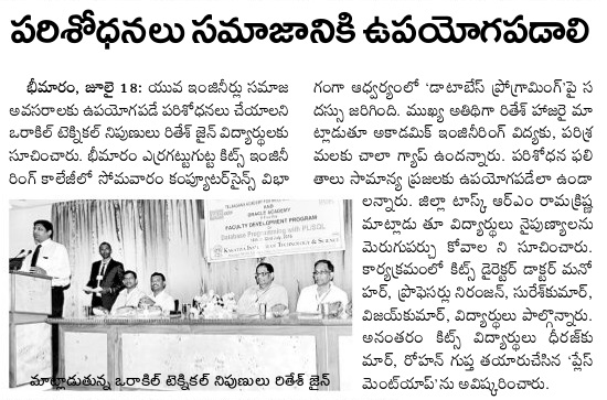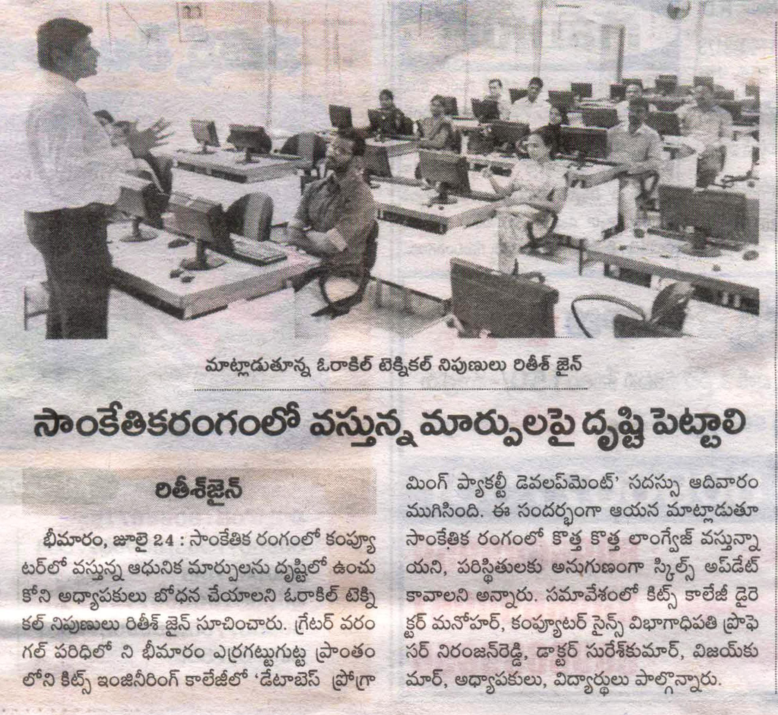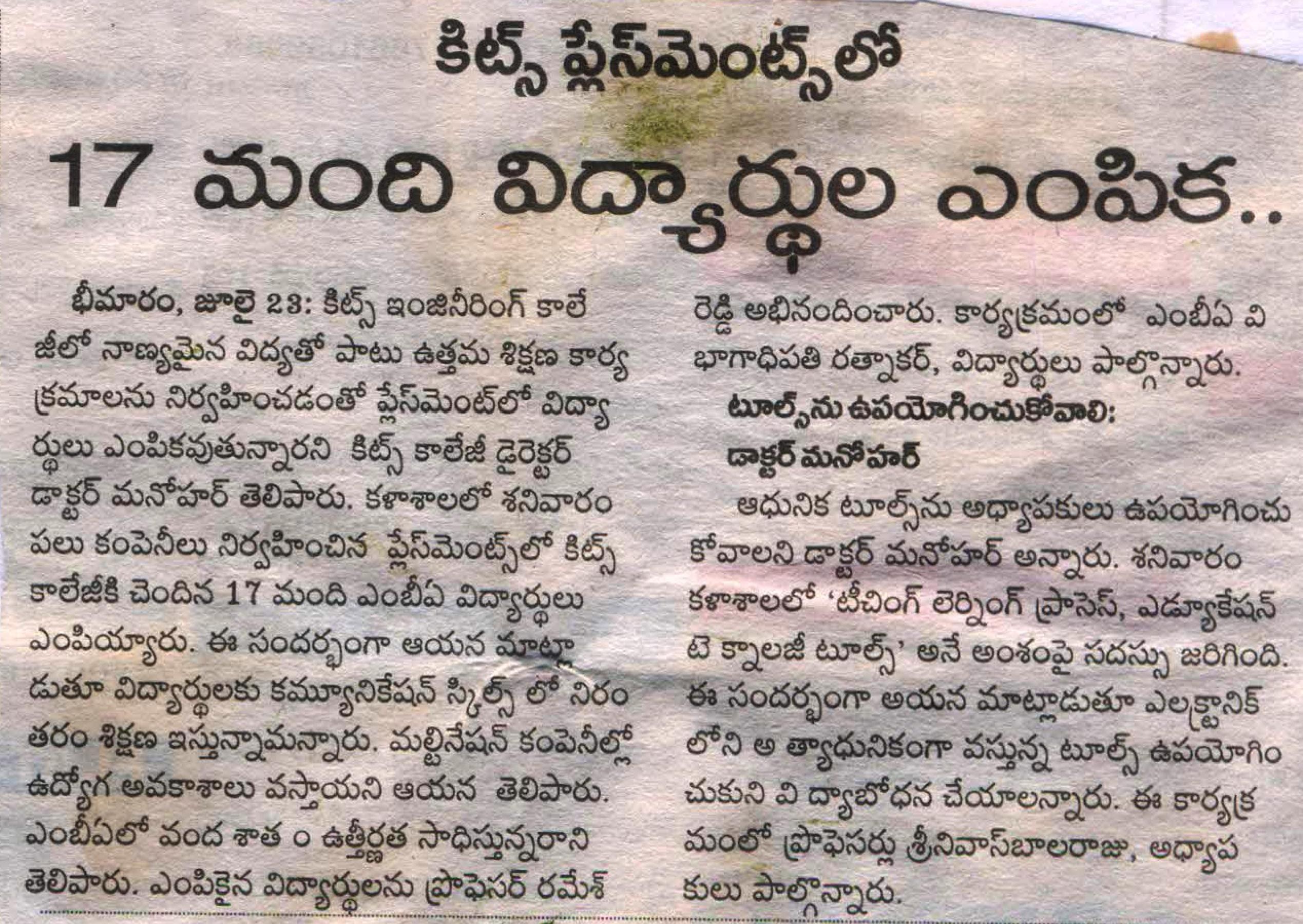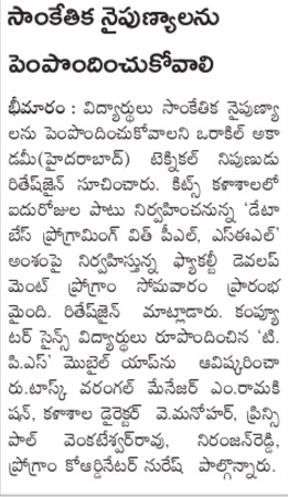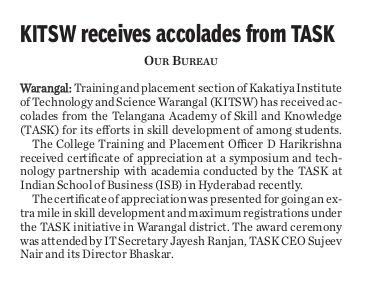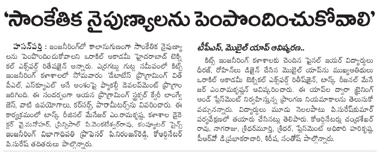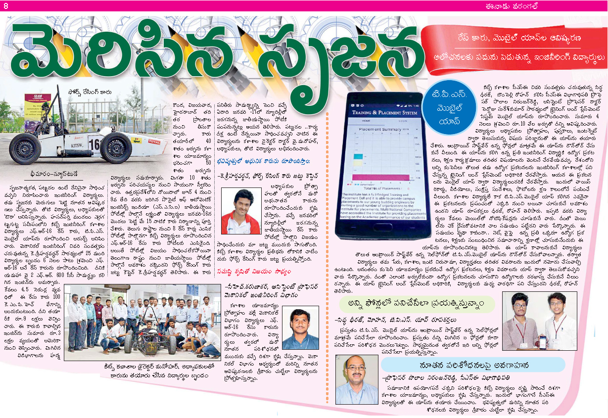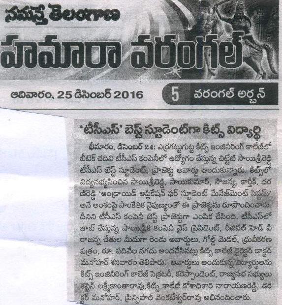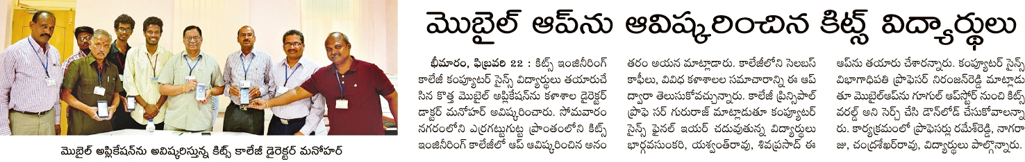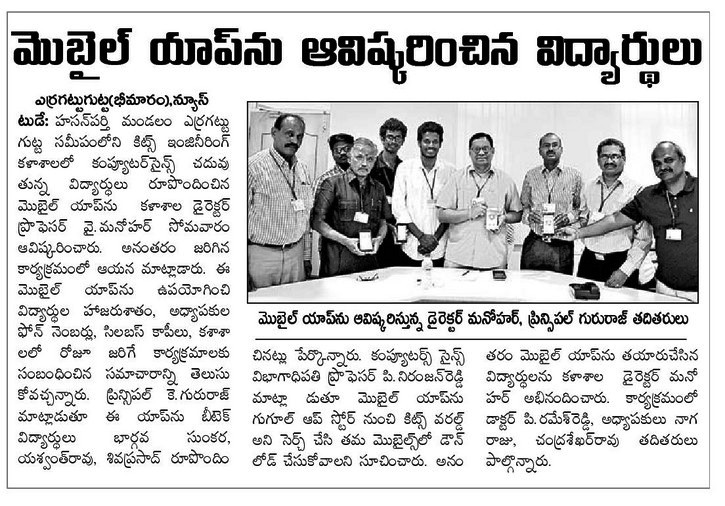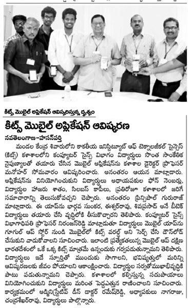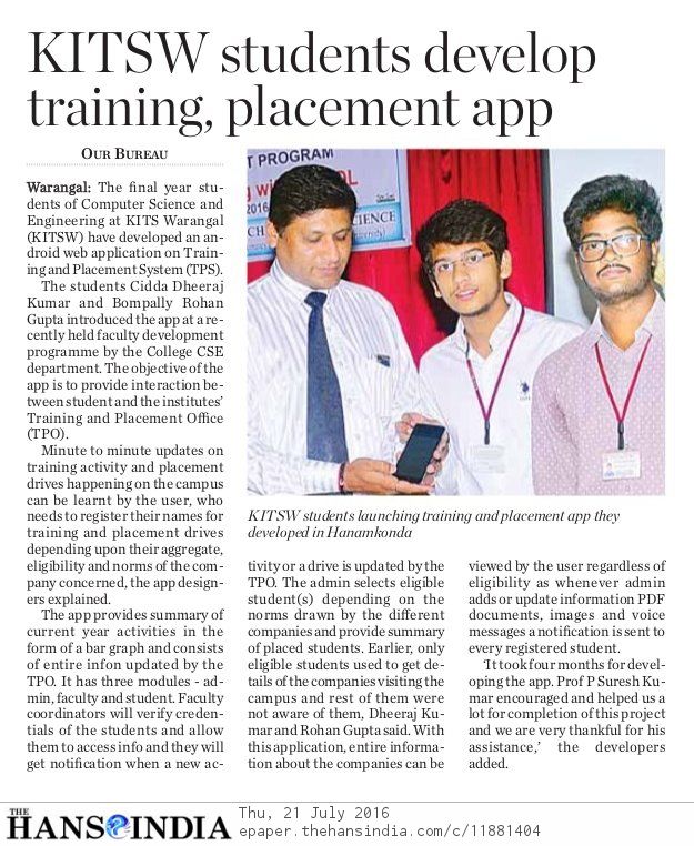 KITSW CSE students developed T&P Mobile App.