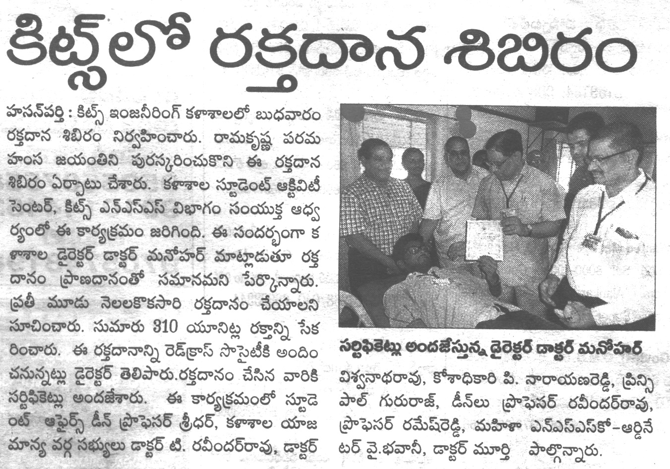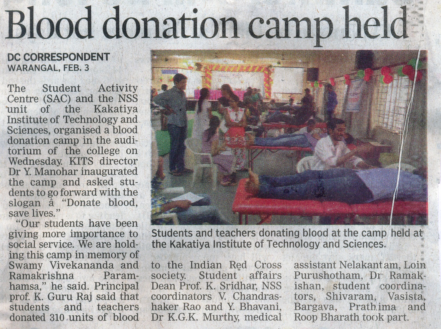 KITSW NSS Unit oranized Blood Donation Camp