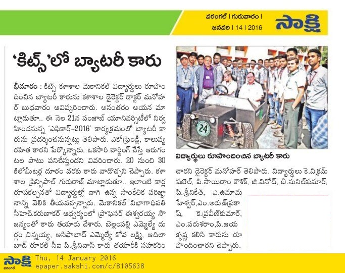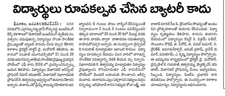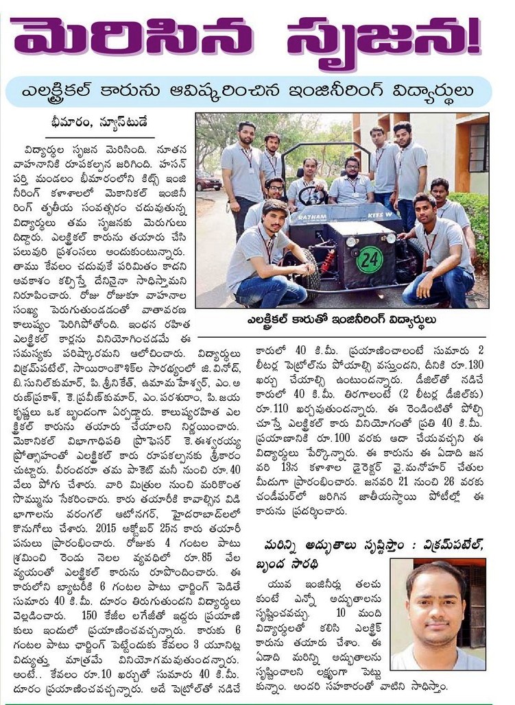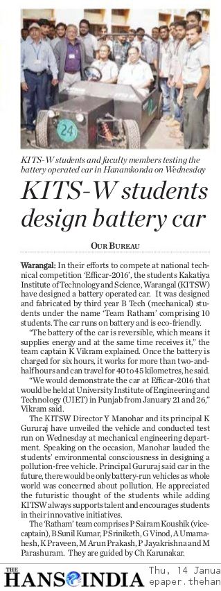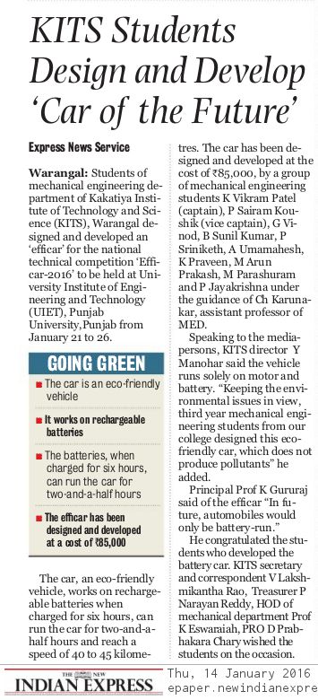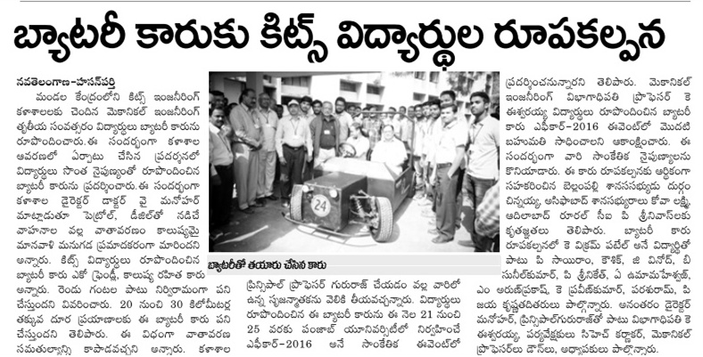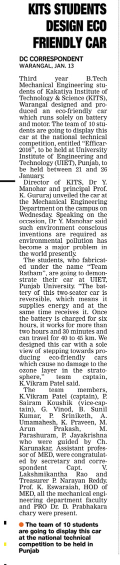 KITS STUDENTS DESIGN ECO FRIENDLY CAR