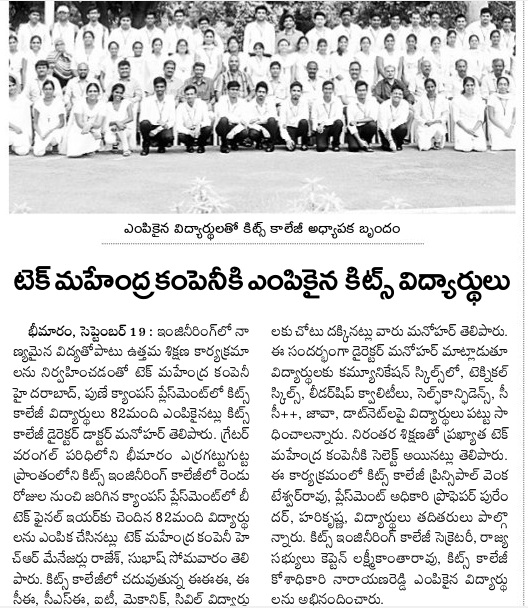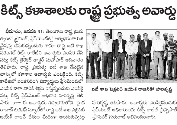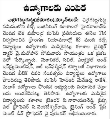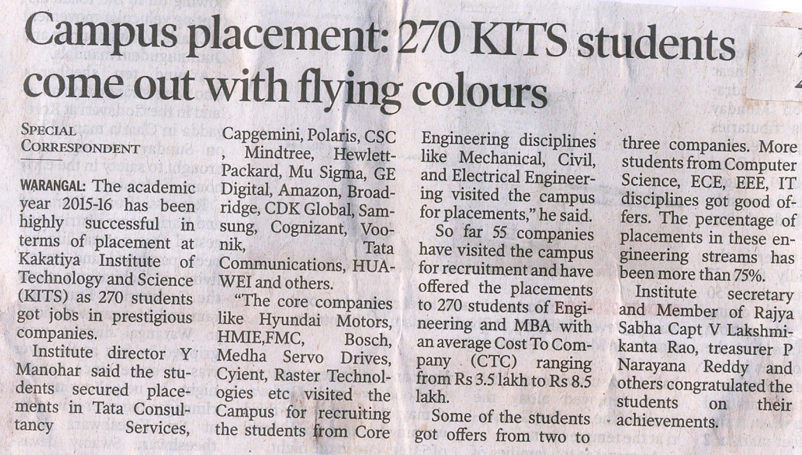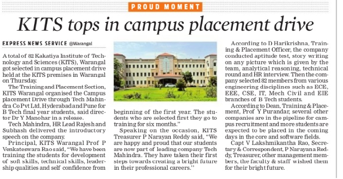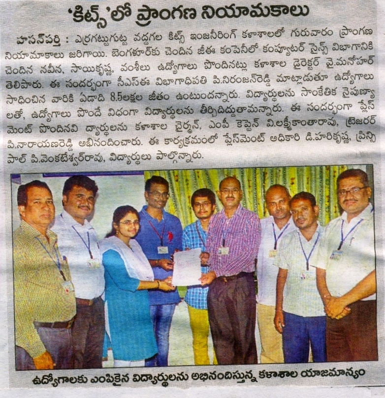 Campus Placements : 270 KITSW students come out with flying colors