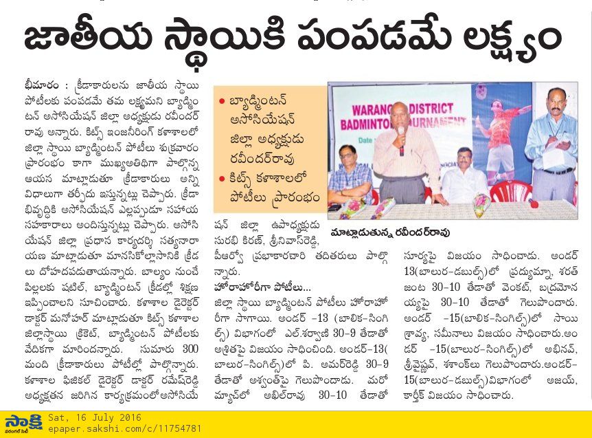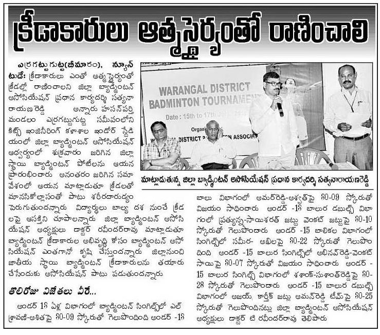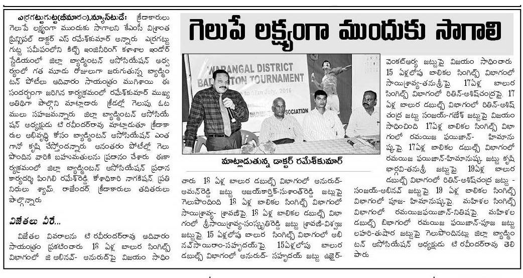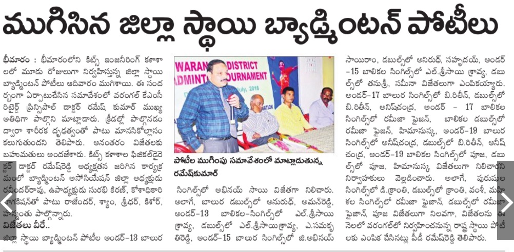 Warangal District Badminton Tournaments @KITSW