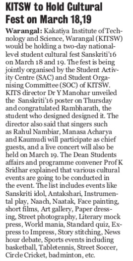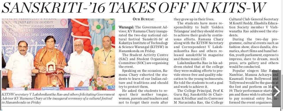 SANSKRITI-16 A Cultural Festival @ KITSW