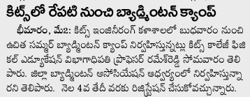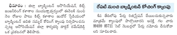 Badminton Summer Free Coaching Camp @KITSW