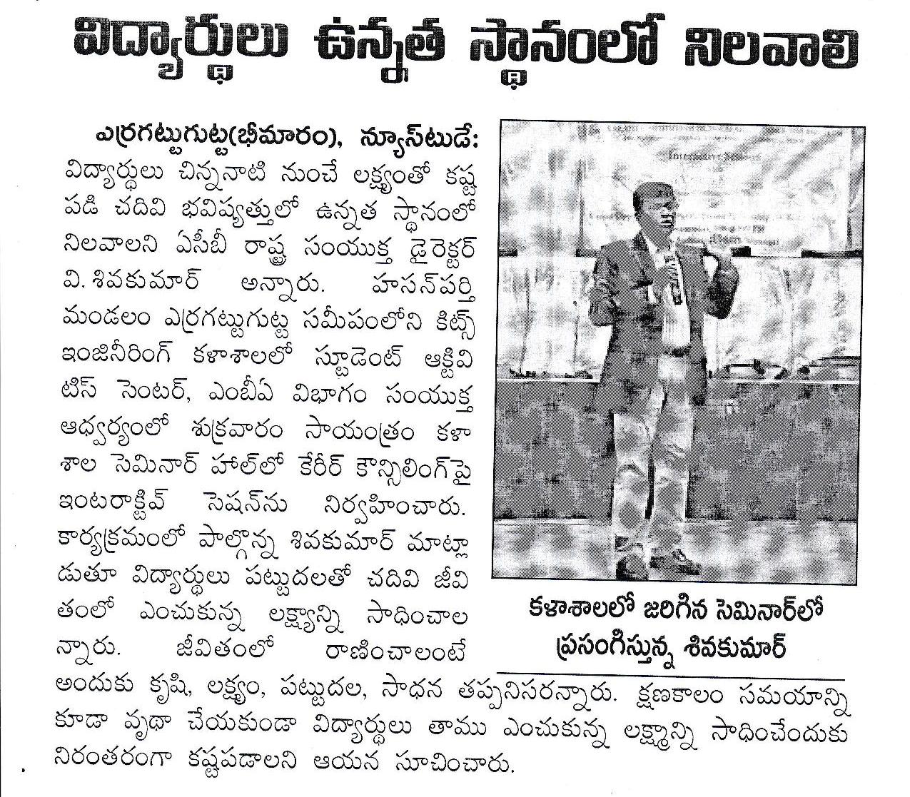 Guest Lecture on "Carrier Counselling & PPP for Better Society" by Sri.P.Shiva Kumar, JD, ACB, TS.