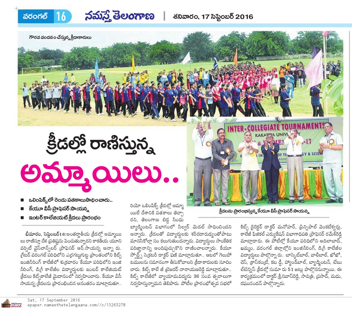 Inter -Collegiate Tournaments@ KITSW