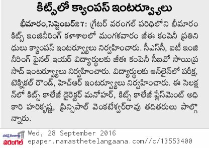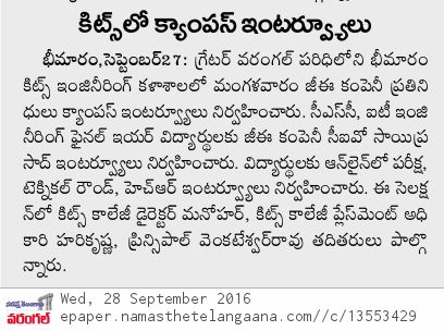 GE Campus Placement Drive@KITSW