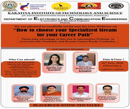Organized an International Live Webinar on “How to choose your Specialized Stream for your Career Path” in association with BLACKBUCK Engineers Pvt. Ltd., at 2:00 PM to 3:00 PM on 16.07.2020 for Second Year Students.
