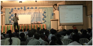 A Sri. M.Srikanth, Sr. Technical Associate, Indo Global Services, Hyderabad delivering a talk about solderinig on the occasion of two Day Workshop conducted on "Printed Circuit Board (Pcb) Design Of Electronic Circuits", Organized by E&I Engineering Department on 31st August to 1st September, 2013.