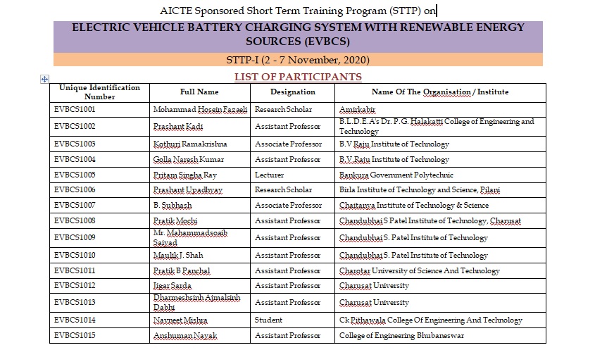AICTE Sponsored Short Term Training Program (STTP) on "Electric Vehicle Battery Charging System with Renewable Energy Sources"