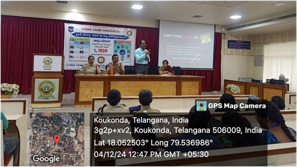![]() Sri K. Vijay Kumar, ACP, Cyber Crimes addressing the students on the eve of Cyber Crimes Awareness Programme held on December 04, 2024 |