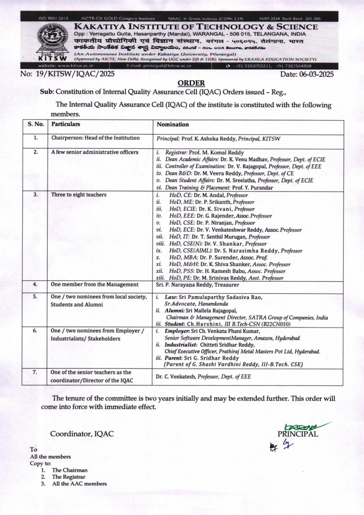 New Internal Quality Assurance Cell(IQAC) composition